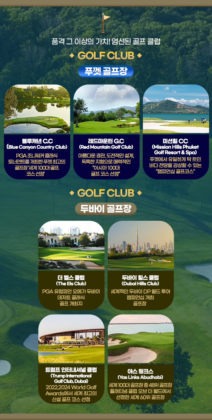 [골프 여제] 박세리와 함께하는 두바이 골프 7일 *SERI’S Golf Package*